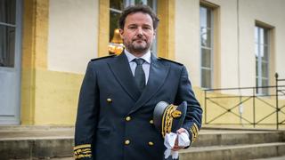 Un homme, Arnaud Bourda, directeur de cabinet du préfet des Landes est assis face caméra et signe son pv d'installation
